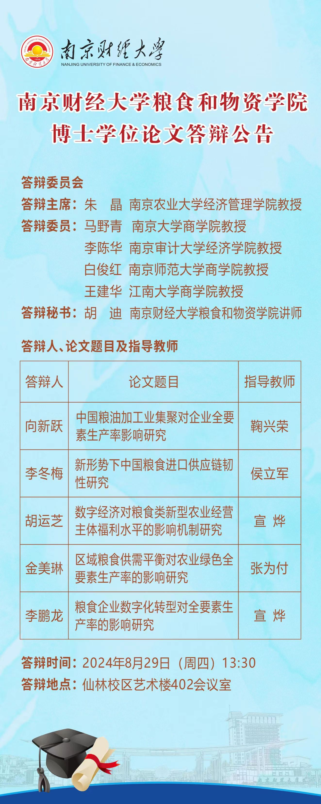 南京财经大学粮食和物资学院博士学位论文答辩公告-足球大赢家