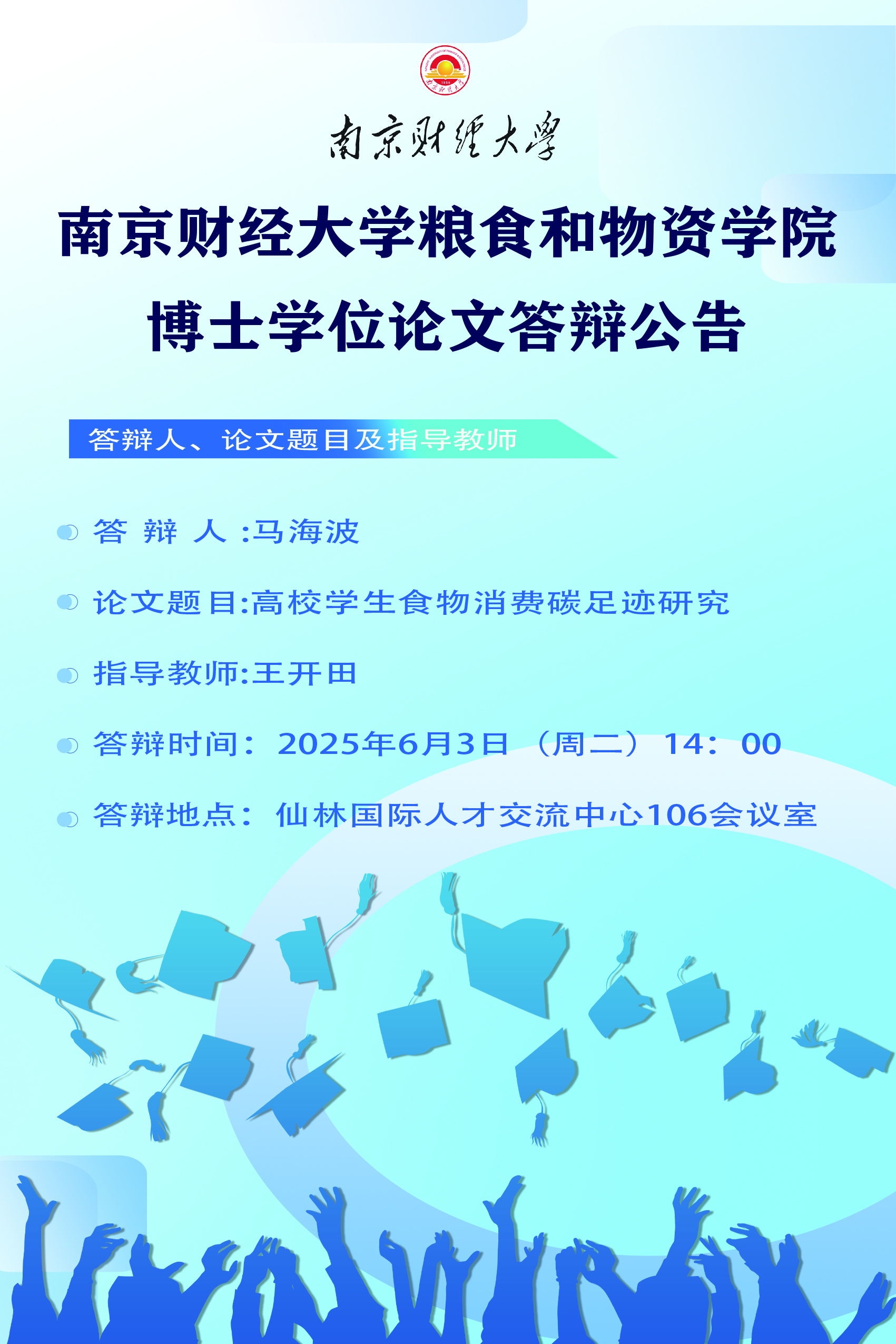 南京财经大学粮食和物资学院博士学位论文答辩公告-足球大赢家